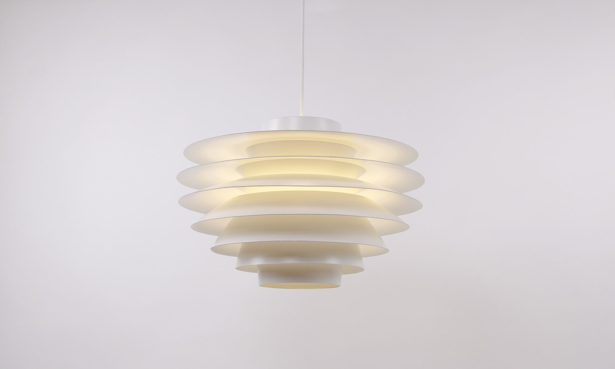 Sven Middelboe "Verona" Hängeleuchte, Dänemark 70er Jahre Designer Sven Middelboe Hersteller/Jahr Nordisk Solar 70er Jahre Dänemark Beschreibung Verona Hängeleuchte entworfen von Sven Middelboe Aluminium, weiss lackiert Sehr guter fast Zustand ohne Schäden 1x E27 Fassung, nach heutigem Standard verkabelt. 3 Stück an Lager Masse H:31cm B:50cm Preis CHF 750.-