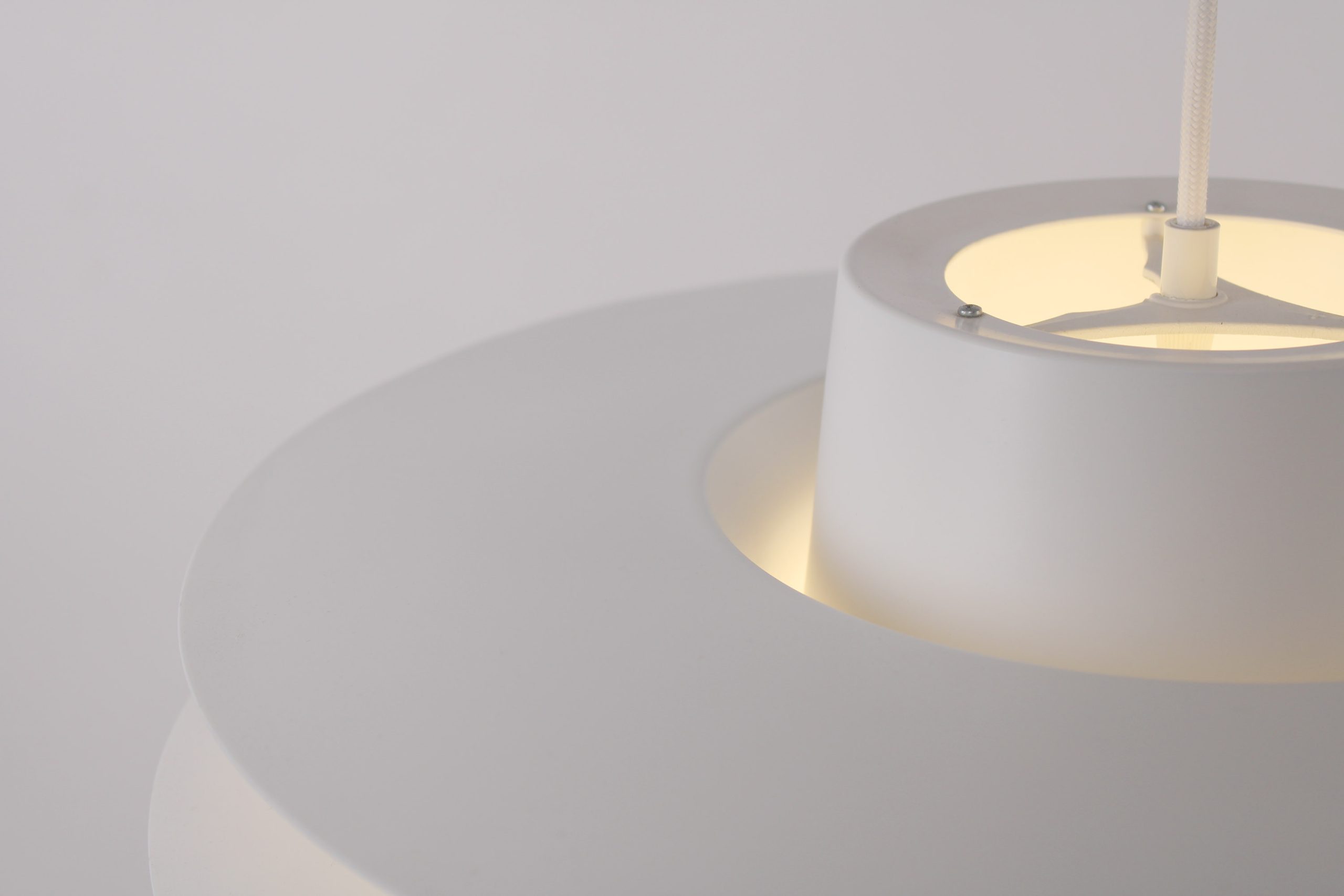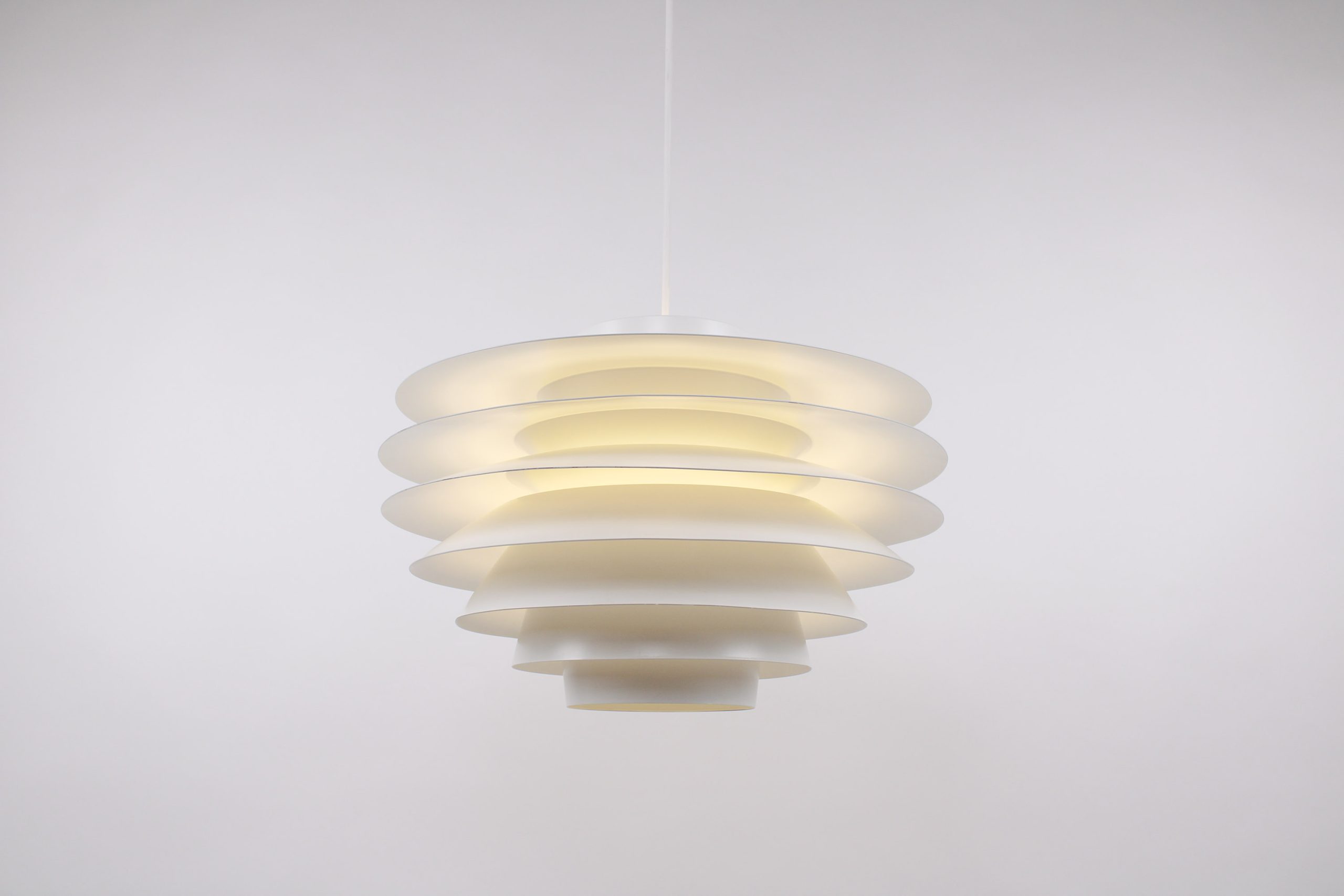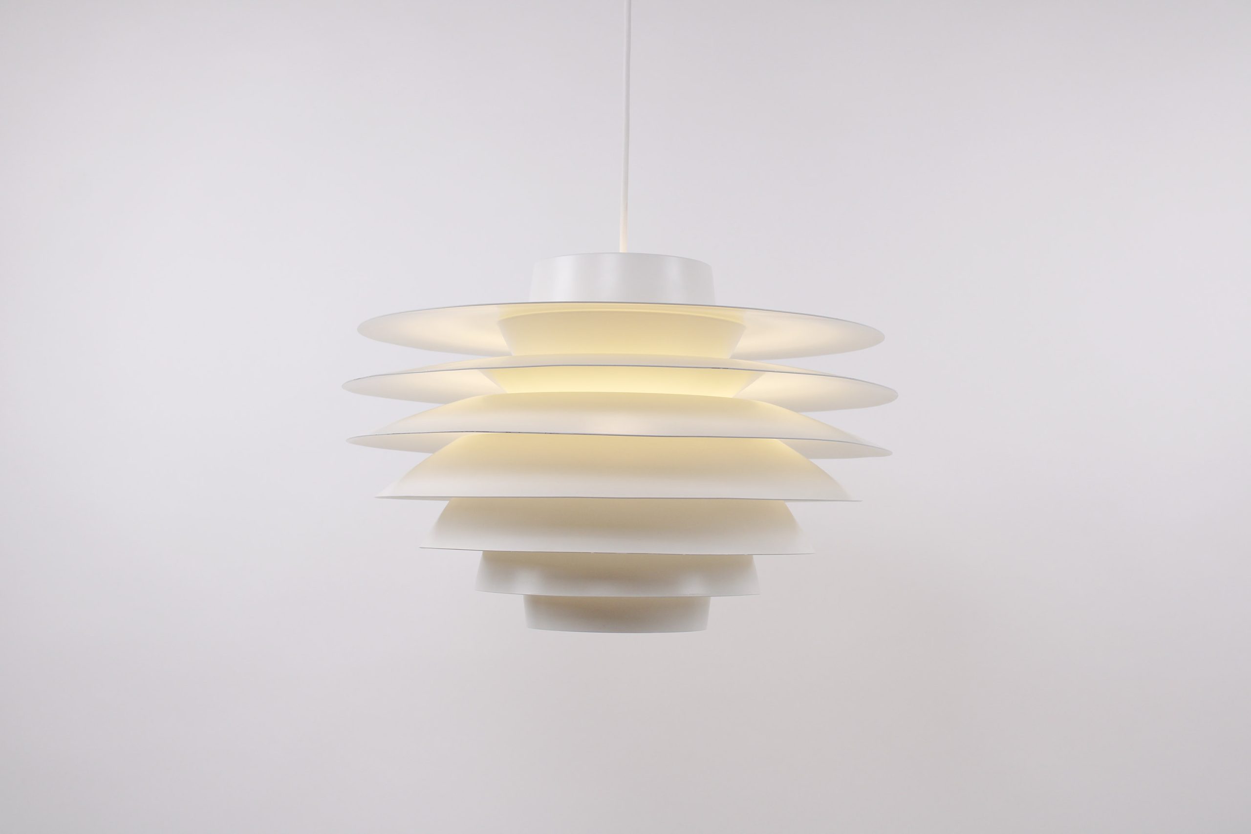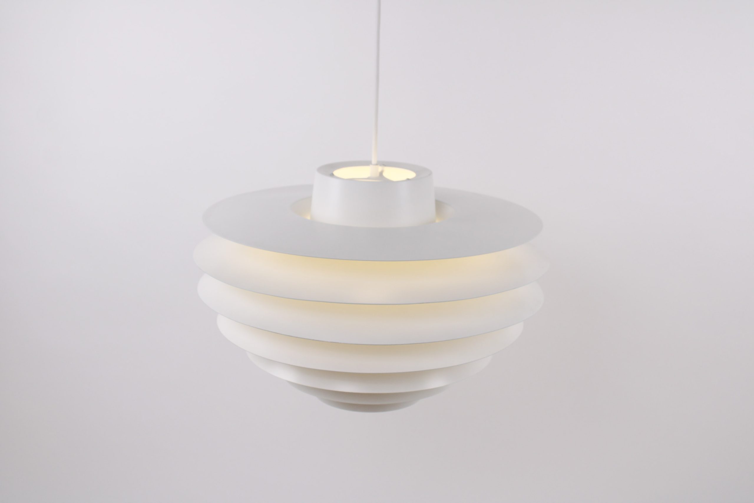 Sven Middelboe "Verona" Hängeleuchte, Dänemark 70er Jahre Designer Sven Middelboe Hersteller/Jahr Nordisk Solar 70er Jahre Dänemark Beschreibung Verona Hängeleuchte entworfen von Sven Middelboe Aluminium, weiss lackiert Sehr guter fast Zustand ohne Schäden 1x E27 Fassung, nach heutigem Standard verkabelt. 3 Stück an Lager Masse H:31cm B:50cm Preis CHF 750.-