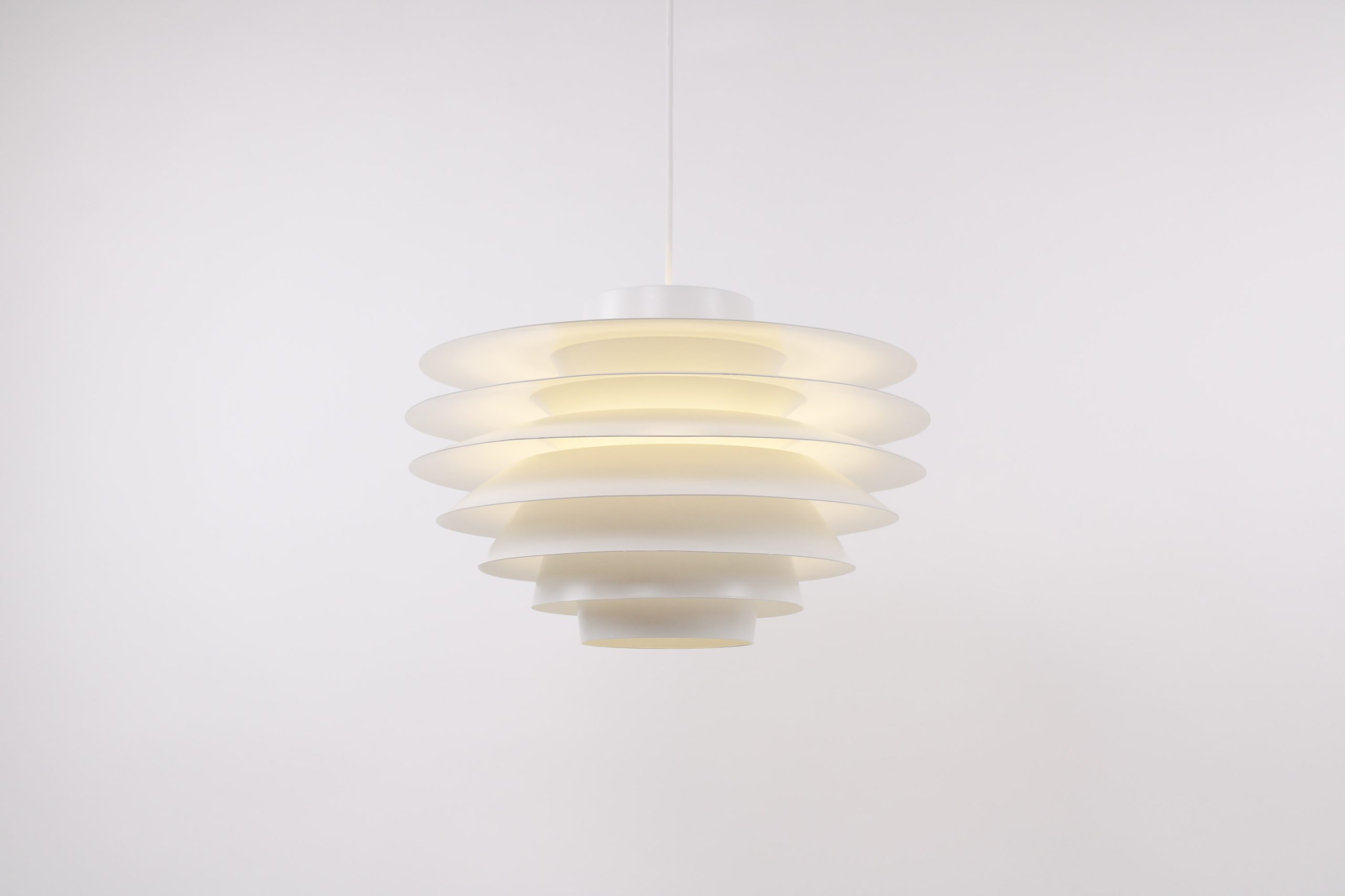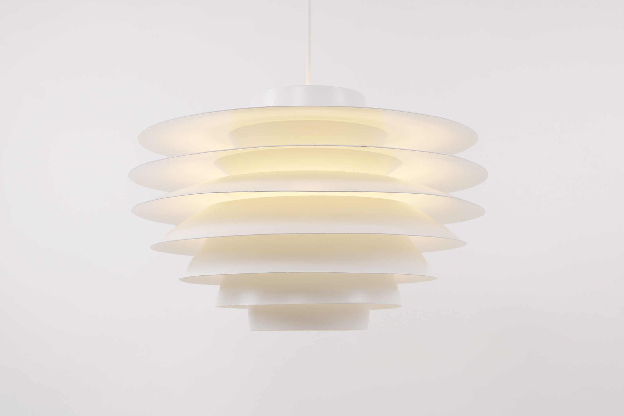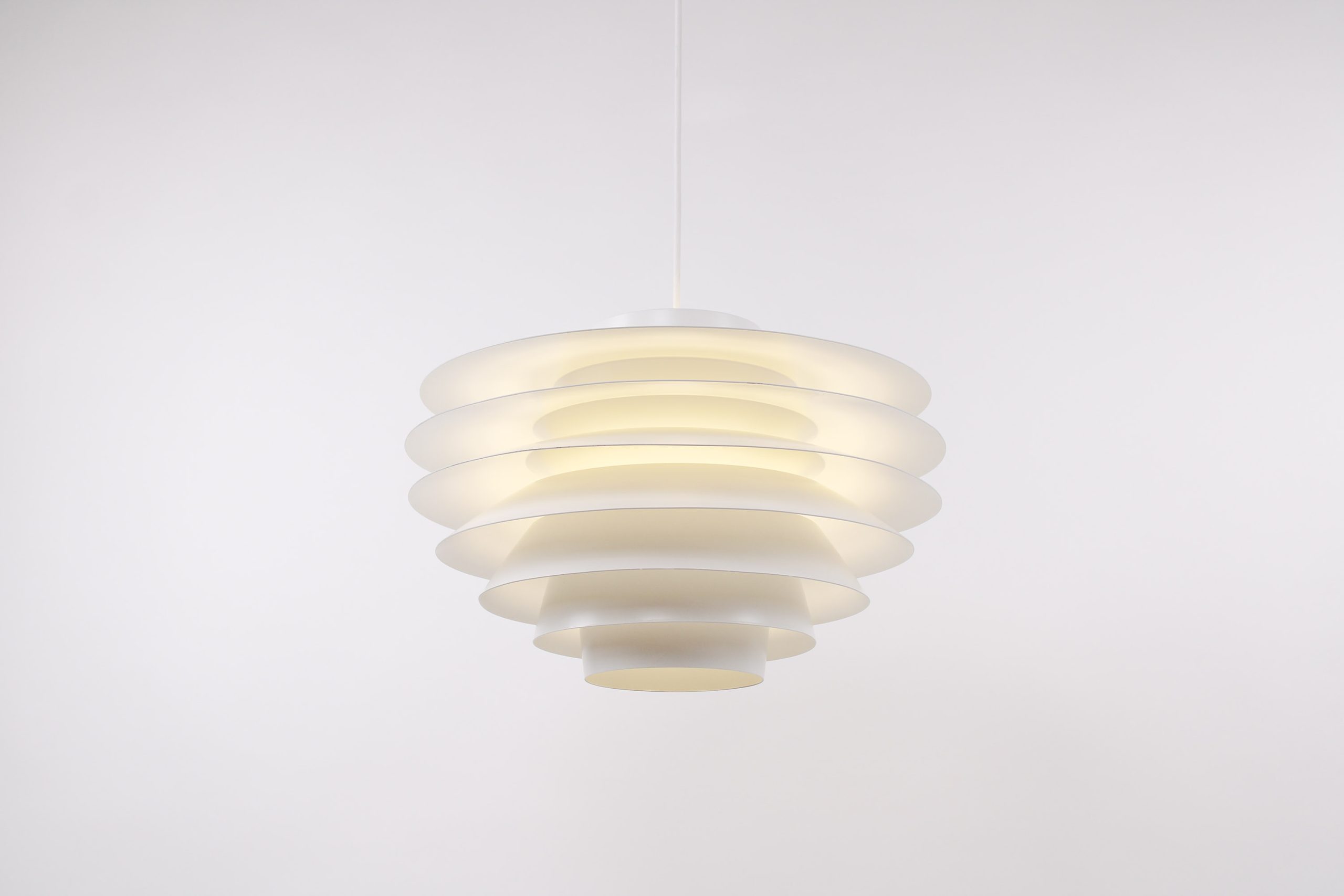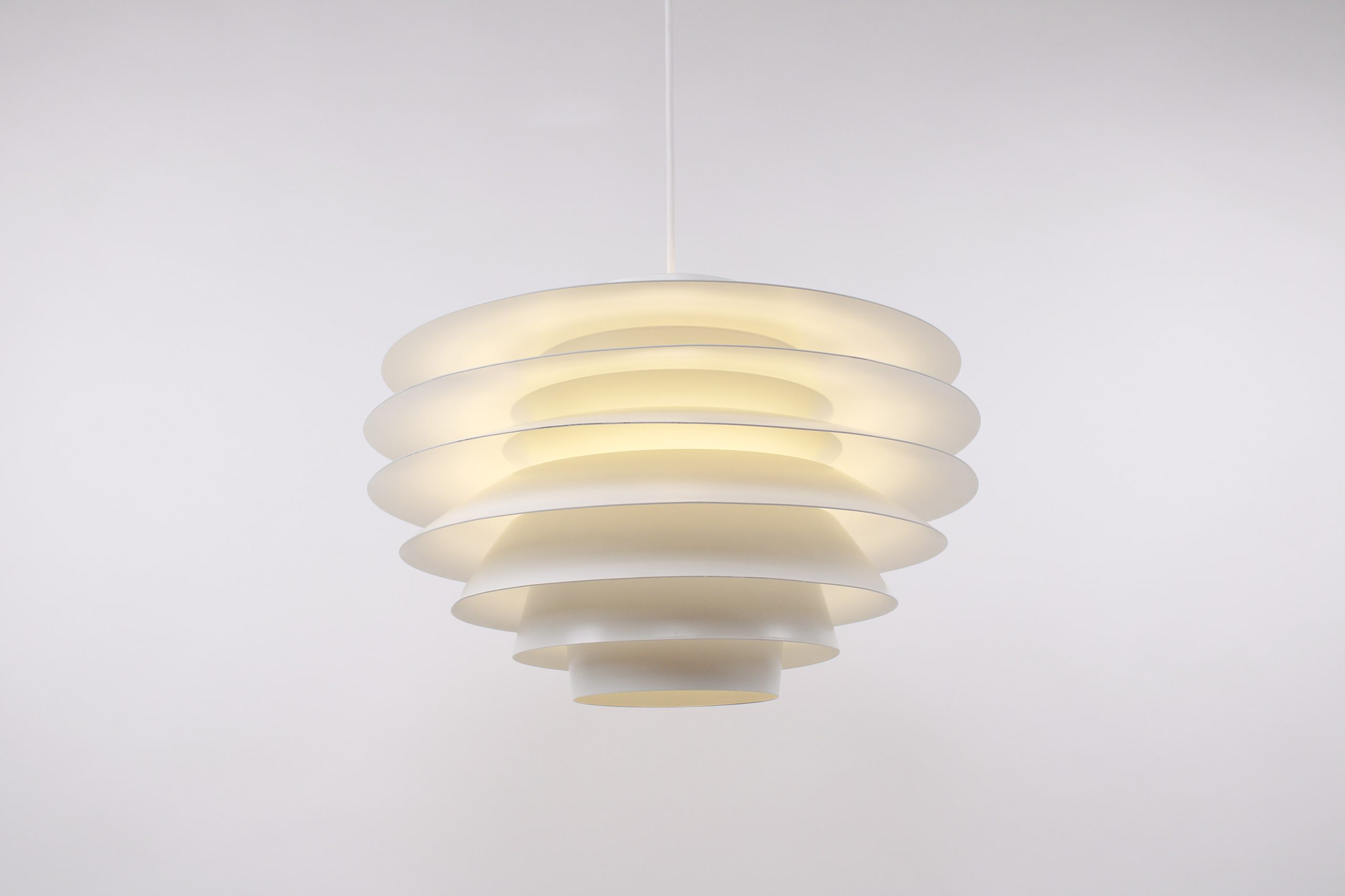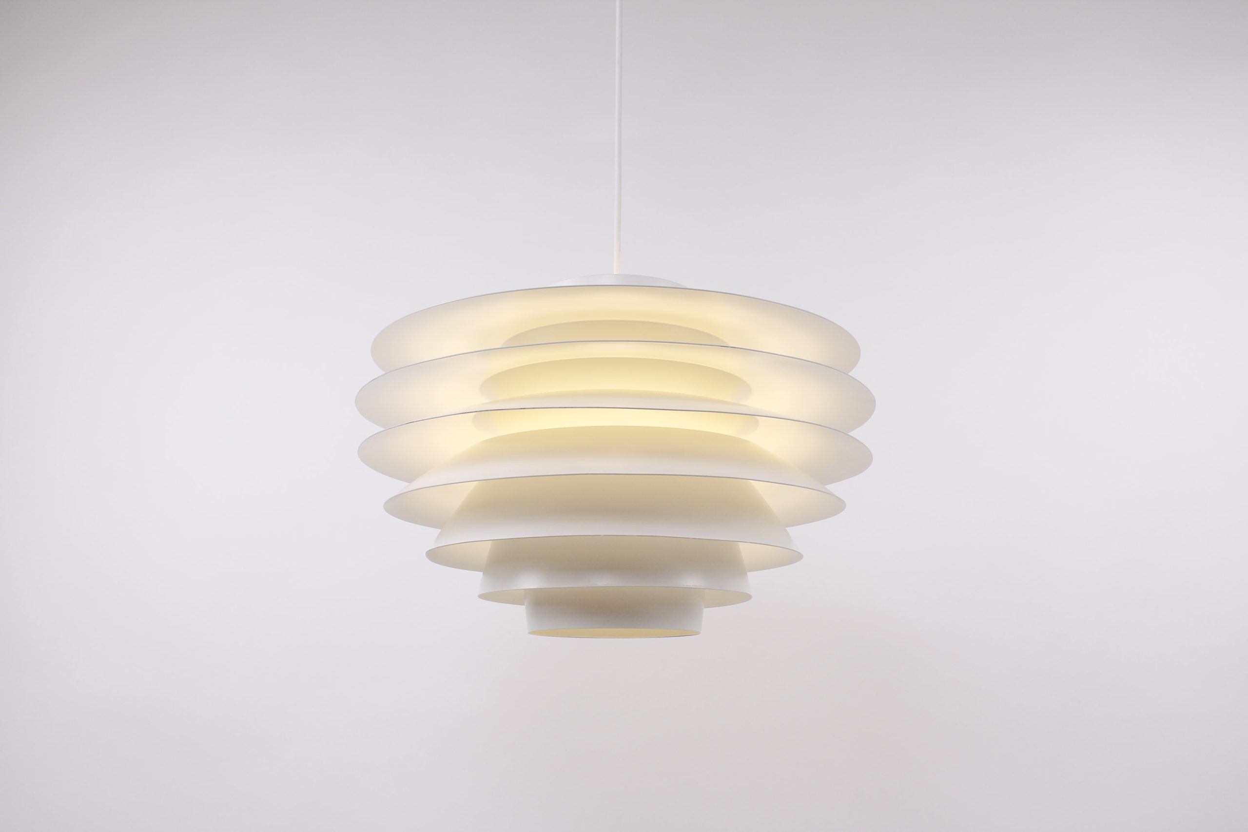 Sven Middelboe "Verona" Hängeleuchte, Dänemark 70er Jahre Designer Sven Middelboe Hersteller/Jahr Nordisk Solar 70er Jahre Dänemark Beschreibung Verona Hängeleuchte entworfen von Sven Middelboe Aluminium, weiss lackiert Sehr guter fast Zustand ohne Schäden 1x E27 Fassung, nach heutigem Standard verkabelt. 3 Stück an Lager Masse H:31cm B:50cm Preis CHF 750.-